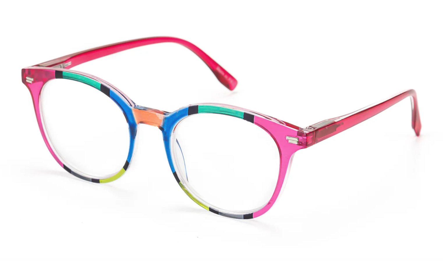 These glasses are as colorful as the rainbow and clear as a bell. The colors range from Blues to Pinks, Yellows to Greens.