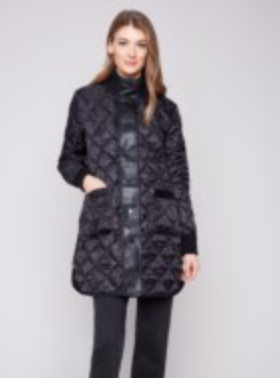 Reversible Solid/Jacquard Long Puffer Jacket With Rib Knit Cuffs and Neck
