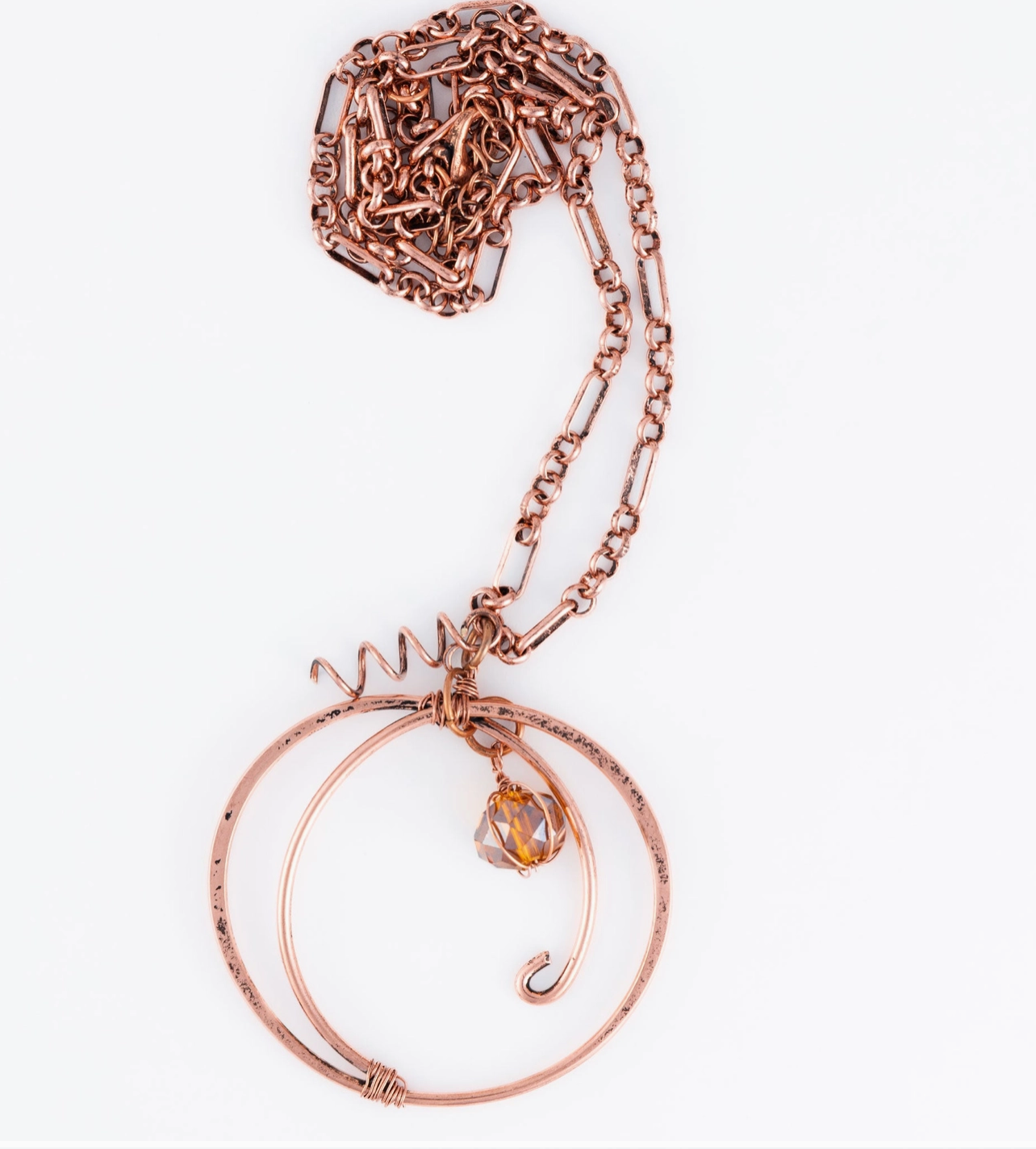 Get in the spirit with the Sookie Pumpkin Pendant Necklace. Featuring a copper chain with wire pumpkin pendant and glass bead charm, this statement necklace adds a bit of festive flair to any look.