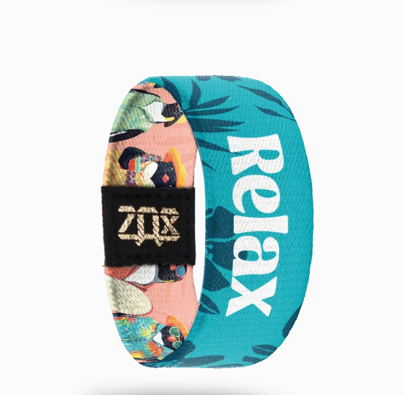 When I first saw this art I laughed out loud - there's something so fitting about penguins, who are (typically) used to very cold weather relaxing someplace warm. This design is such a perfect reminder of what the reminder is all about - taking yourself out of a situation that's making you stressed and learning to let go - to stop worrying and give yourself a break. This is especially relevant to me as I was thinking about what to write on the card. To be honest, it was a reminder I really needed myself: There's no need to take everything so seriously. Relax, let go, and learn to laugh again. I know I'm not alone in this quest to relax in the new year. I hope this little hug for your wrist helps you as much as it has me.