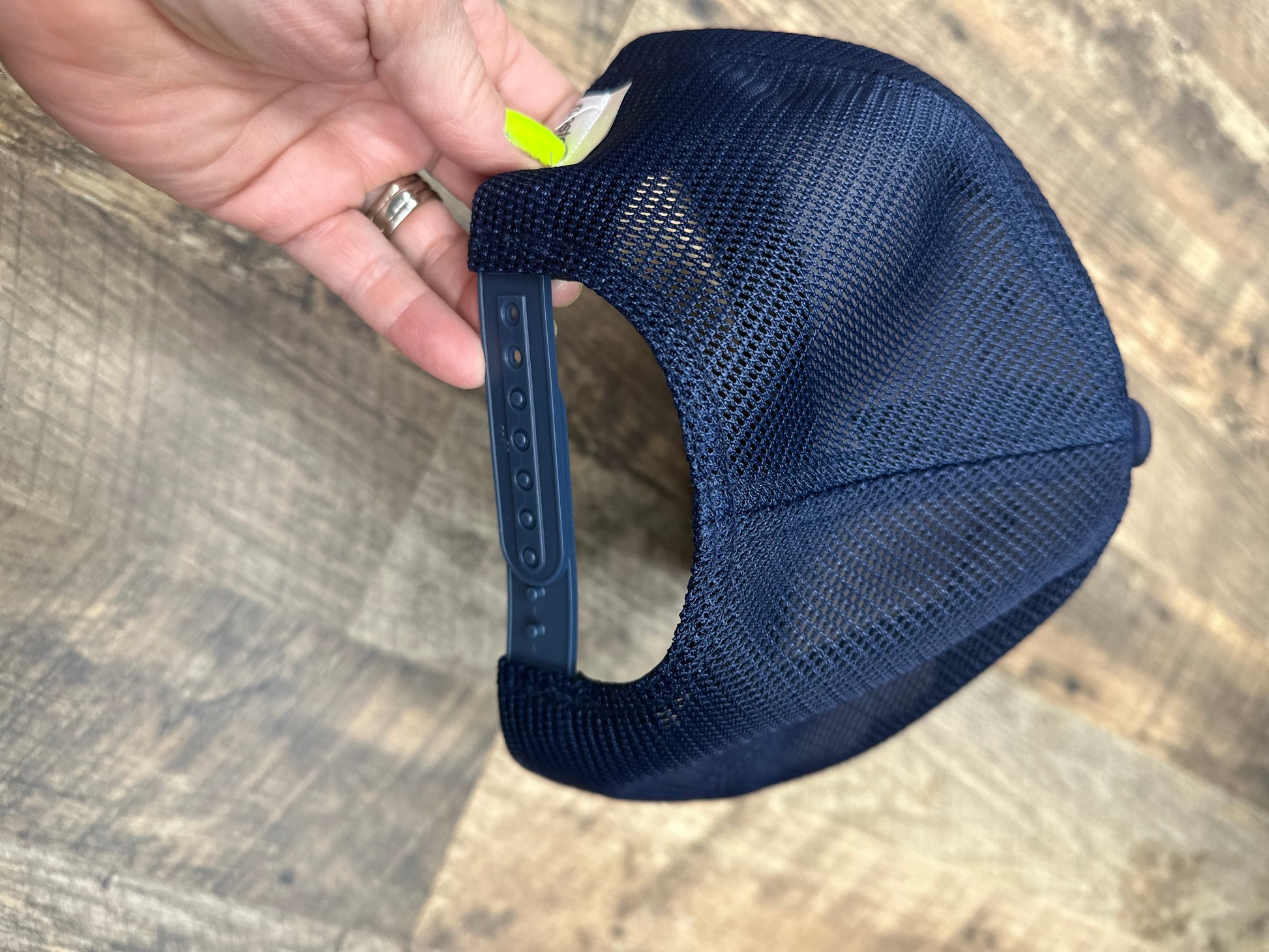 the black hat has black mesh, Navy hat has navy mesh, Gray hat has black mesh