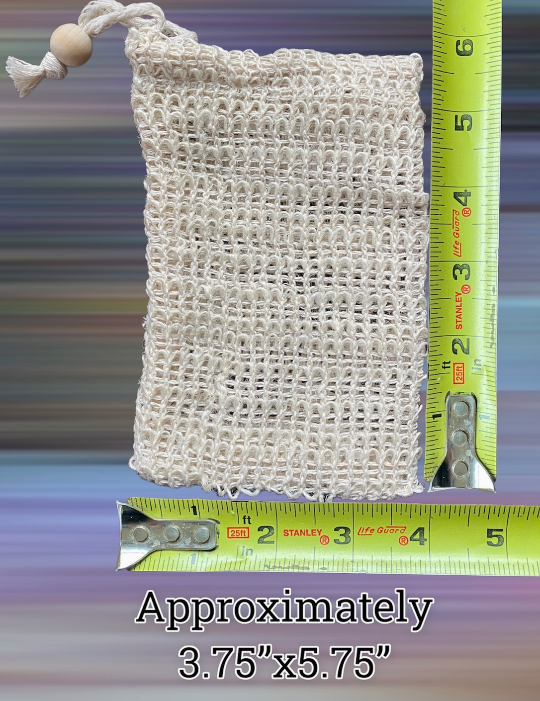 natural sisal soap saver exfoliating pouches with drawstring and wooden bead trim. These are plenty big enough to fit a full bar of soap, or perfect for using up all those seeming impossibly-to-use-up soap bits at the end of the life of your bar of soap Pop your favorite bar of soap inside and you are good to go!